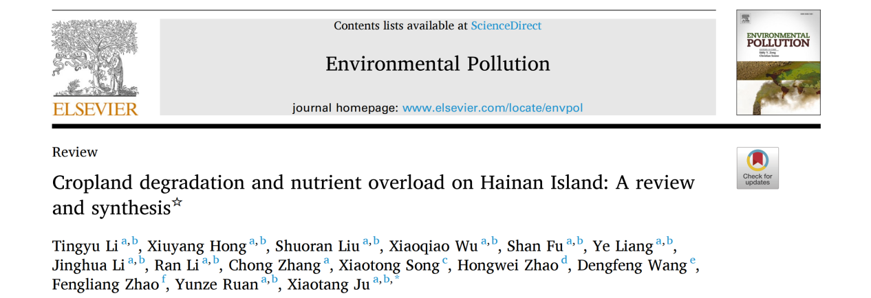 9月8日,环境科学类TOP期刊《Environmental Pollution》以公司三亚南繁研究院为第一单位,热带耕地养分资源循环利用与质量保育团队李婷玉副研究员为第一作者,发表了题为“Cropland degradation and nutrient overload on Hainan Island: A review and synthesis”《海南岛农田退化与养分过量投入:综述与综合》的综述论文。