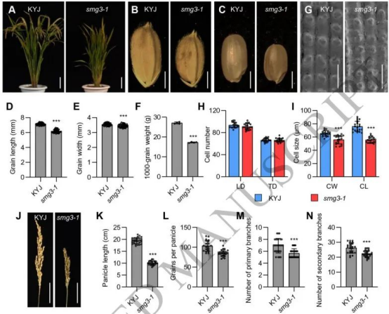 图1. small grain 3-1突变体(smg3-1)因细胞减小而形成小籽粒