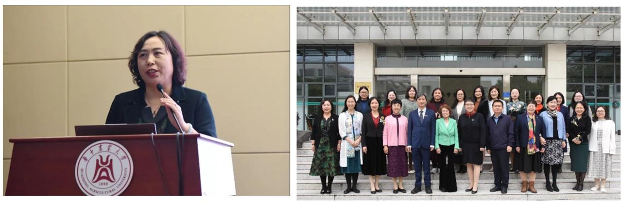 图16. 李海燕教授作报告分享(左图);华中农业大学站2023“女科学家学术与科普”校园行活动留影(右图)