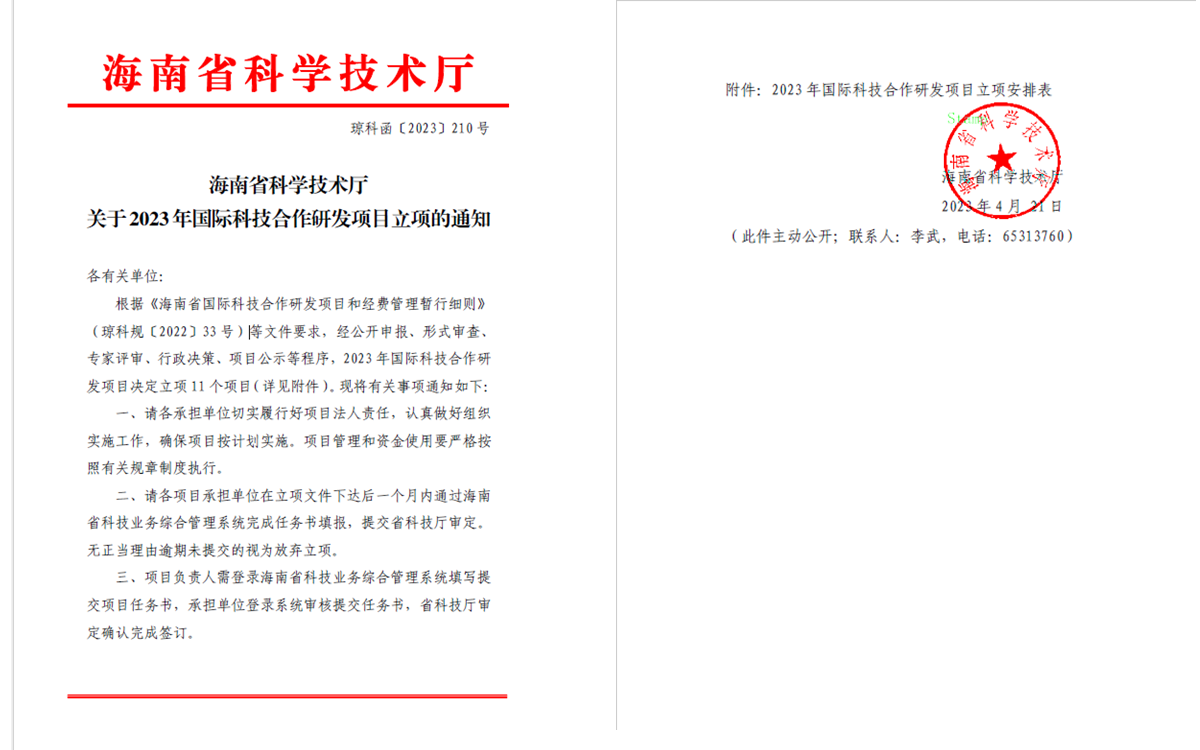 图12. 海南省科学技术厅关于2023年国际科技合作研发项目立项的通知