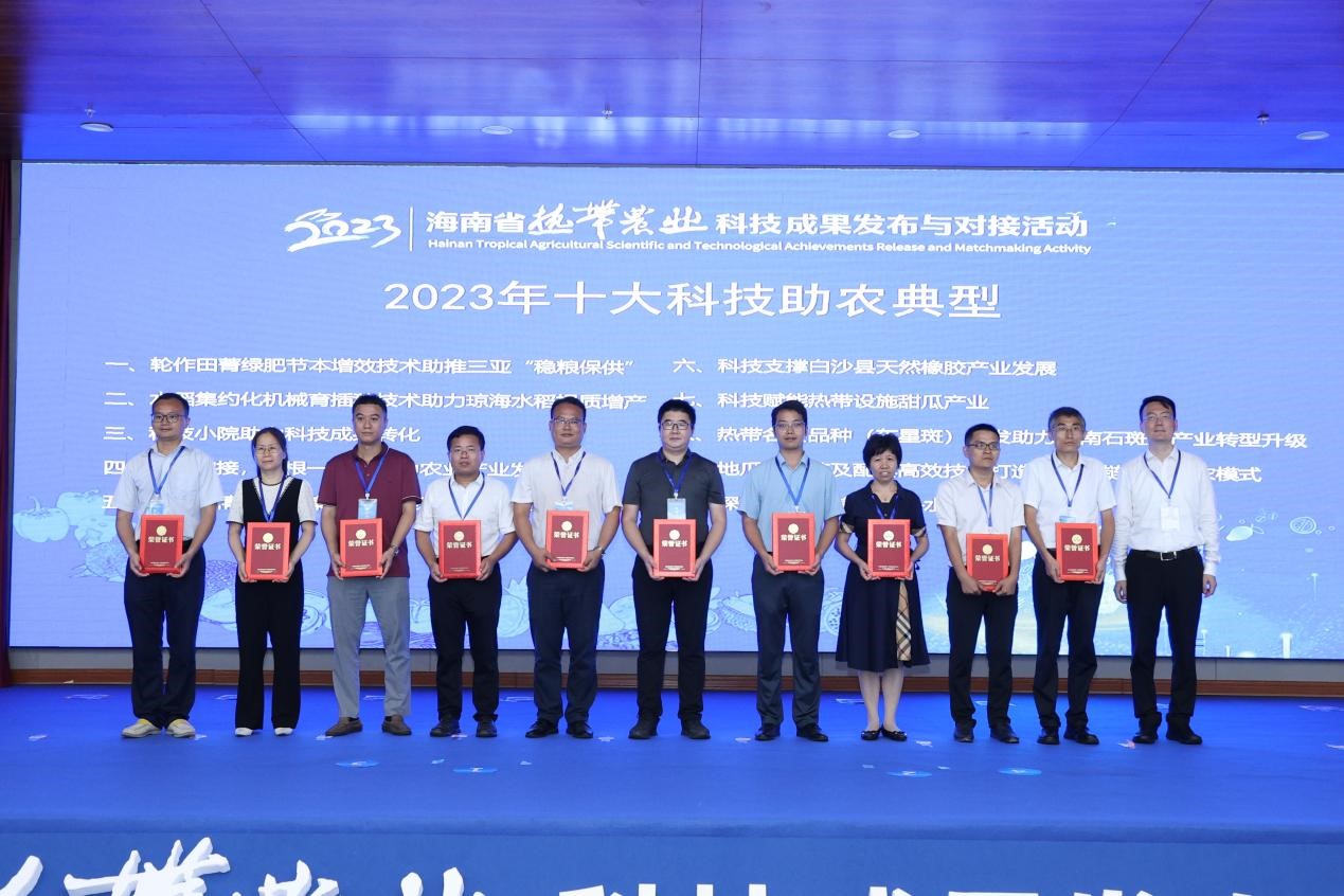 2023年5月27日,海南省农业农村厅与海南省乡村振兴局联合主办“海南省热带农业科技成果发布与对接活动”在中国热带农业科公司(海口院区)举办,该活动旨在进一步推进全省农业科技创新与成果推广应用,促进农业产业高质量发展,助力乡村全面振兴。公司杨小锋常务副经理牵头的“科技赋能热带设施甜瓜产业”和阮云泽教授牵头的“科技小院助力科技成果转化”两项科研成果获得“2023年十大科技助农典型”。
