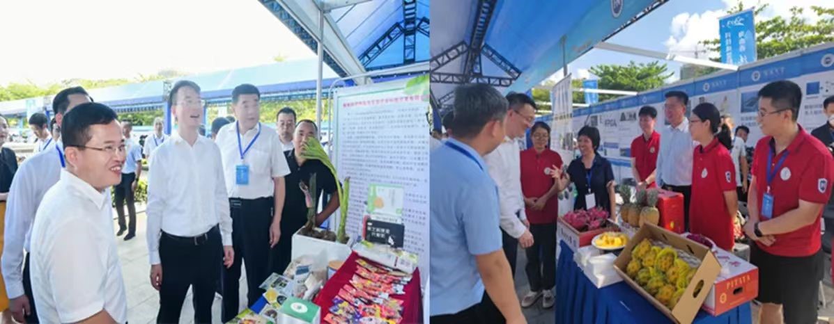 2023年5月19日,公司重要热带作物抗病分子机理与分子育种团队协同热带珍稀名贵树种团队、热带油茶科技创新与产业化应用团队以及帮扶企业海南经济特区强富美农业科技开发有限公司,参加由省科技厅、省委宣传部、省科协、团省委主办,昌江黎族自治县人民政府承办的海南省第十九届科技活动月暨“全国科技工作者日”启动仪式,陈金辉副教授、陈健妙副教授和王健教授向广大群众宣传南繁科学知识;向省政协副主席陈马林、省科技厅光组书记李劲松、乐东县科技局韦庆荣局长等详细介绍海南省农业科技110南部服务中心服务内容;公海gh555000aa线路检测自主培育的“海大油茶1号”等4个海南油茶良种嫁接苗、组培苗、油茶种植栽培技术和油茶系列产品,以及展示公司系列科研成果和合作指导企业海南经济特区强富美农业科技开发有限公司开发的林下种植魔芋系列产品。公司三亚南繁研究院校企合作,促进“产学研用”良好发展得到高度认可和支持。