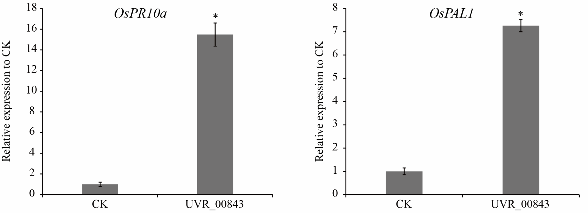 为解决上述技术问题,本发明提供了一种稻曲病菌效应蛋白及其在水稻抗病中的应用,外源施用该效应蛋白能够抑制稻曲病菌,显著提高水稻抗病性,调控抗病基因表达显著提高。