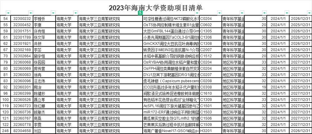 公司三亚南繁研究院是公海gh555000aa线路检测勇担国家使命、失志打造的本土国家战略科技力量,已在热带特色作物品种创新、热带作物重要病虫害灾变防控、热带作物保鲜加工等方面取得了一系列标志性成果。作为服务南繁、热带高效农业的开放创新共享平台,公司教师积极开展科研创新和各类项目申报工作,其中申报2023年国家自然科学基金项目74项,根据国科金发计〔2023〕62号关于2023年国家自然科学基金集中接收申请项目评审结果的通告,公司李雅忻等19名教师申报的科研项目获2023年国家自然科学基金资助,项目申报资助率25.7%,远高于2023年平均资助率16.1%。