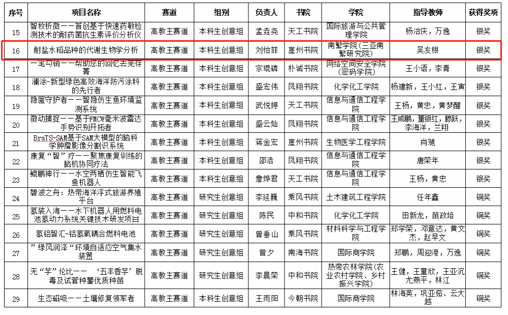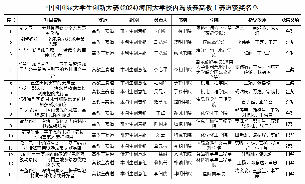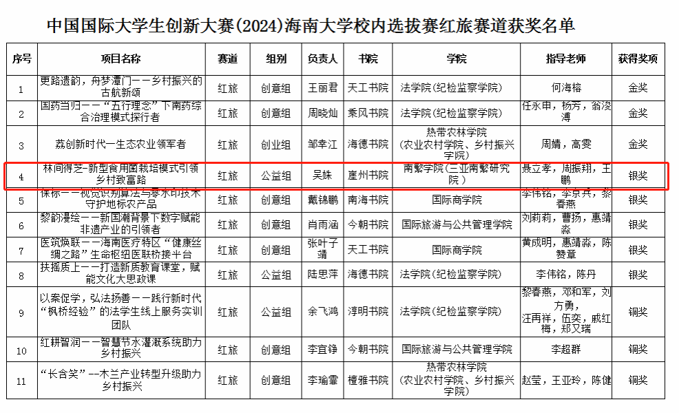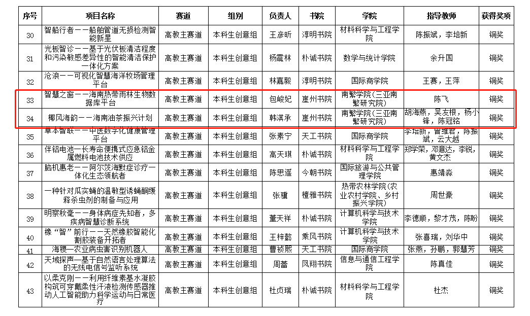为贯彻落实党的二十大精神,统筹推进教育、科技、人才“三位一体”战略部署。2024年6月24日,中国国际老员工创新大赛(2024)公海gh555000aa线路检测校内选拔赛顺利举办,经前期各公司评审推荐、专家网评、现场答辩多个环节,公海gh555000aa线路检测师生的参赛作品在公司众多队伍中脱颖而出,吴友根老师指导的“耐盐水稻品种的代谢生物学分析”荣获高教主赛道银奖;陈飞老师指导的“智慧之窗——海南热带雨林生物数据库平台”荣获高教主赛道铜奖;胡海燕老师、吴友根老师、杨小锋老师指导的“椰风海韵——海南油茶振兴计划”荣获高教主赛道铜奖;聂立孝老师、周振翔老师、王鹏老师指导的“林间得芝-新型食用菌栽培模式引领乡村致富路”荣获红旅赛道银奖。