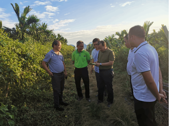 乐东是海南槟榔主产区之一,在海南全省槟榔种植业中占据重要地位。由于当地农户种植技术不高等原因,近年来槟榔虫害发生和流行现象较为严重,槟榔蚧壳虫传播的槟榔黄化病现象发生比较普遍。黄东益书记和体系首席吉建邦研究员、植保与绿色防控岗位专家黄惜研究员在乐东报仑、利国等槟榔基地开展了槟榔产业调研与生产技术指导,就槟榔种植过程中存在的蚧壳虫防治及槟榔黄化病预防等问题进行了技术指导。
