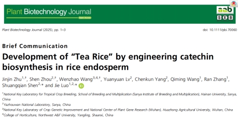 近日,代谢生物学团队在《Plant Biotechnology Journal》期刊上发表了题为“Development of “Tea Rice” by engineering catechin biosynthesis in rice endosperm ”的研究论文,该研究通过代谢工程策略培育出胚乳富集儿茶素的水稻材料——“茶稻”,为功能型谷物开发提供了新思路,对提升粮食营养价值和推动健康农业发展具有重要意义。