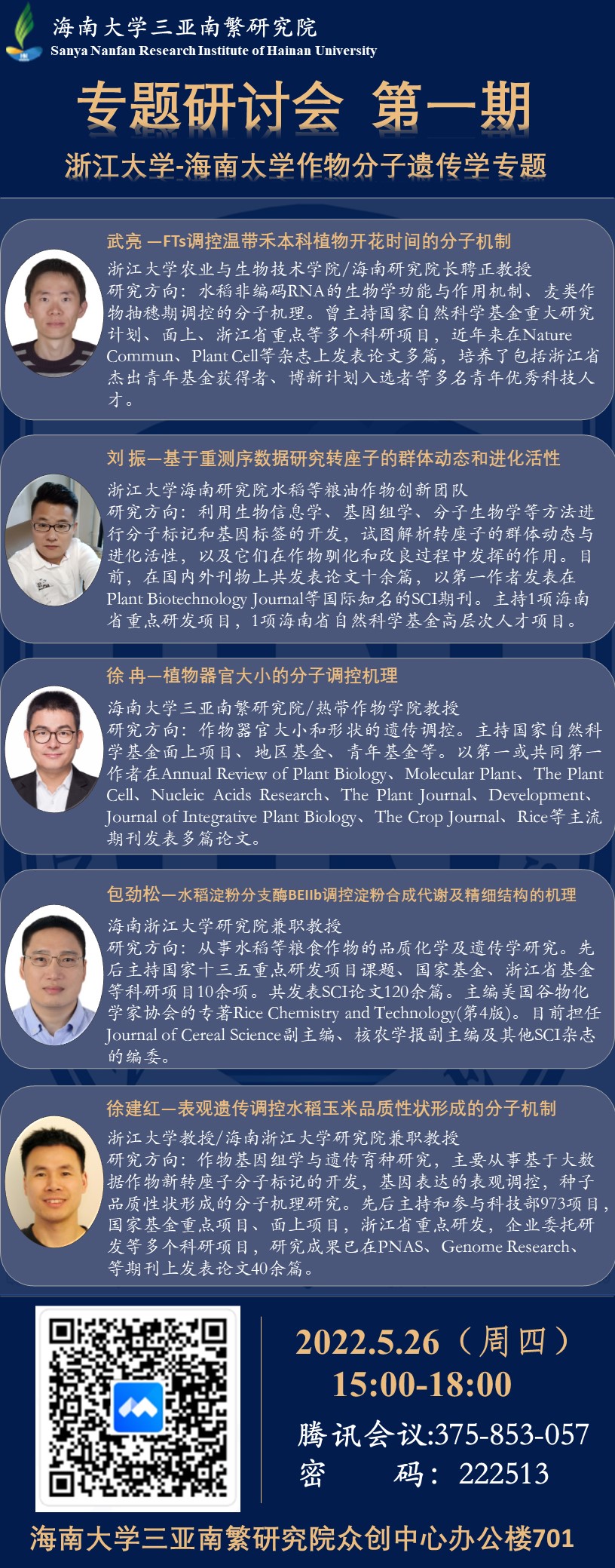 【学术研讨会预告】浙江大学-公海gh555000aa线路检测作物分子遗传学专题研讨会(海大南繁院专题研讨会第1期)