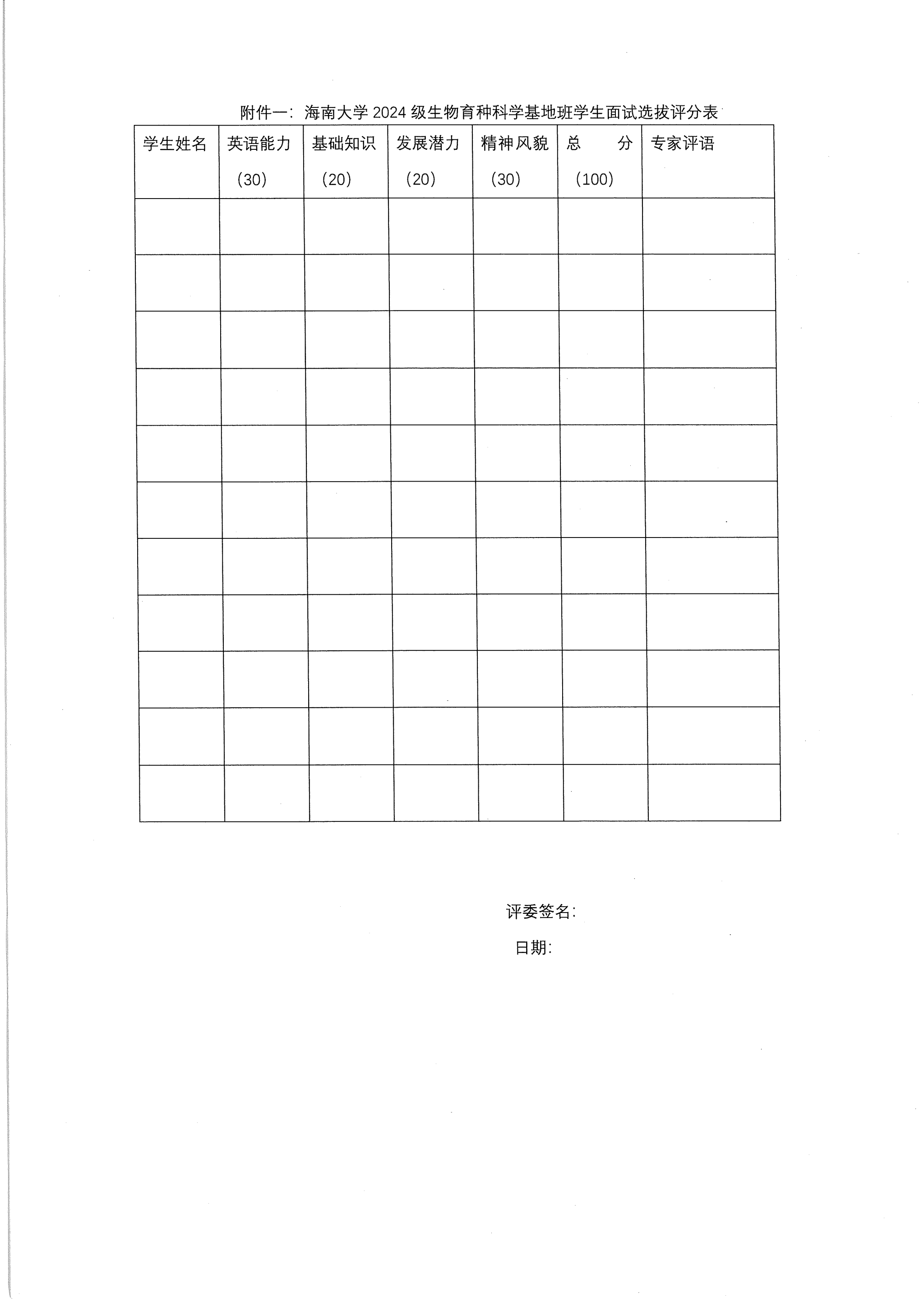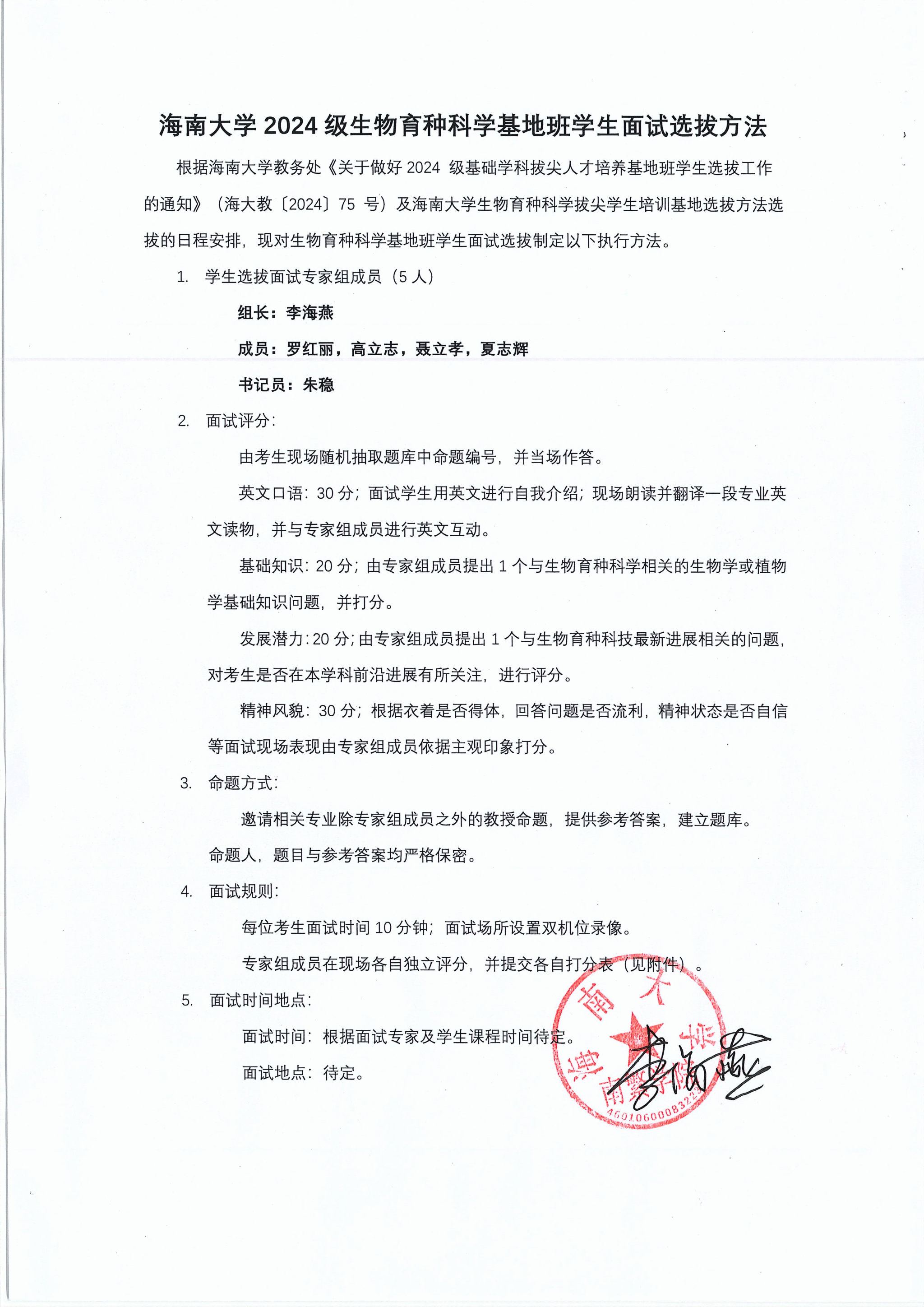 2024级生物育种科学基地班员工面试选拔方法