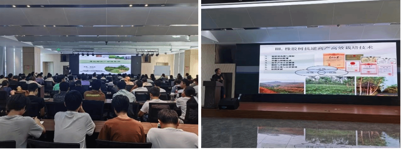 最后安锋研究员结合自己多年的橡胶树栽培管理与研究经验,给员工介绍了橡胶树抗逆高产高效栽培技术,让员工了解到橡胶树从一棵种子长成可以割胶的橡胶树所需要的技能与知识。整个授课过程,安锋研究员将课程思政潜移默化的融入到了教学内容之中,引发了同学们对“科技兴农”和“学习报国”的共鸣;同时安锋老师在讲解过程中深入浅出、理论联系实际,加上其幽默诙谐的授课风格,让员工不仅轻松掌握了橡胶树栽培的关键知识,而且体会到了一个科研工作者对研究的热爱。