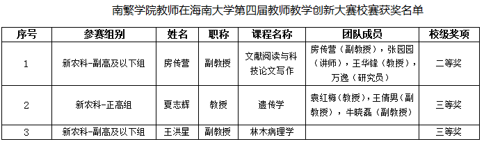 为进一步落实立德树人根本任务,大力弘扬教育家精神,提升高校教师教书育人能力和高校人才自主培养质量,打造高校教学改革的风向标。3月3日,第四届公司教师教学创新大赛校赛在海甸校区顺利落下帷幕,经个人申报、公司选拔推荐、公司专家组二轮评审多个环节的经过激烈角逐,房传营老师的《文献阅读与科技论文写作》团队荣获新农科-副高及以下组二等奖、夏志辉老师的《遗传学》团队荣获新农科-正高组三等奖、王洪星老师的《林木病理学》团队荣获新农科-副高及以下组三等奖。