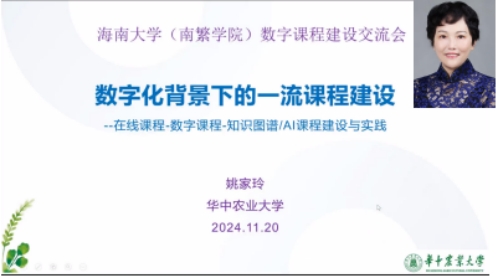 会上,姚家玲教授分别从国家一流课程建设与发展历程、在线课程(慕课)建设与实践、基于知识图谱工具的AI课程建设以及知识图谱/AI赋能数字化教学创新等四个方面讲述了数字化课程建设的意义和途径,并以植物慕课为例,讲述了在线课程建设的流程和注意事项。她表示,一流课程建议要紧紧围绕员工中心地位,以先进的教学理念设计培养目标与课程内容,使得课程有效支撑人才培养目标,最终以可视化图谱的形式形象地展示完整知识架构。