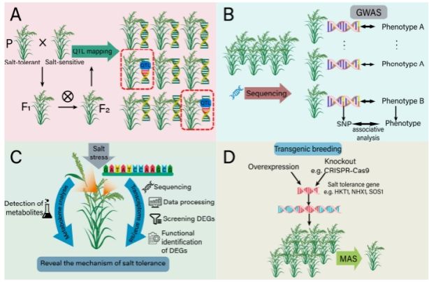 图2.利用分子技术手段培育耐盐作物的策略示意图